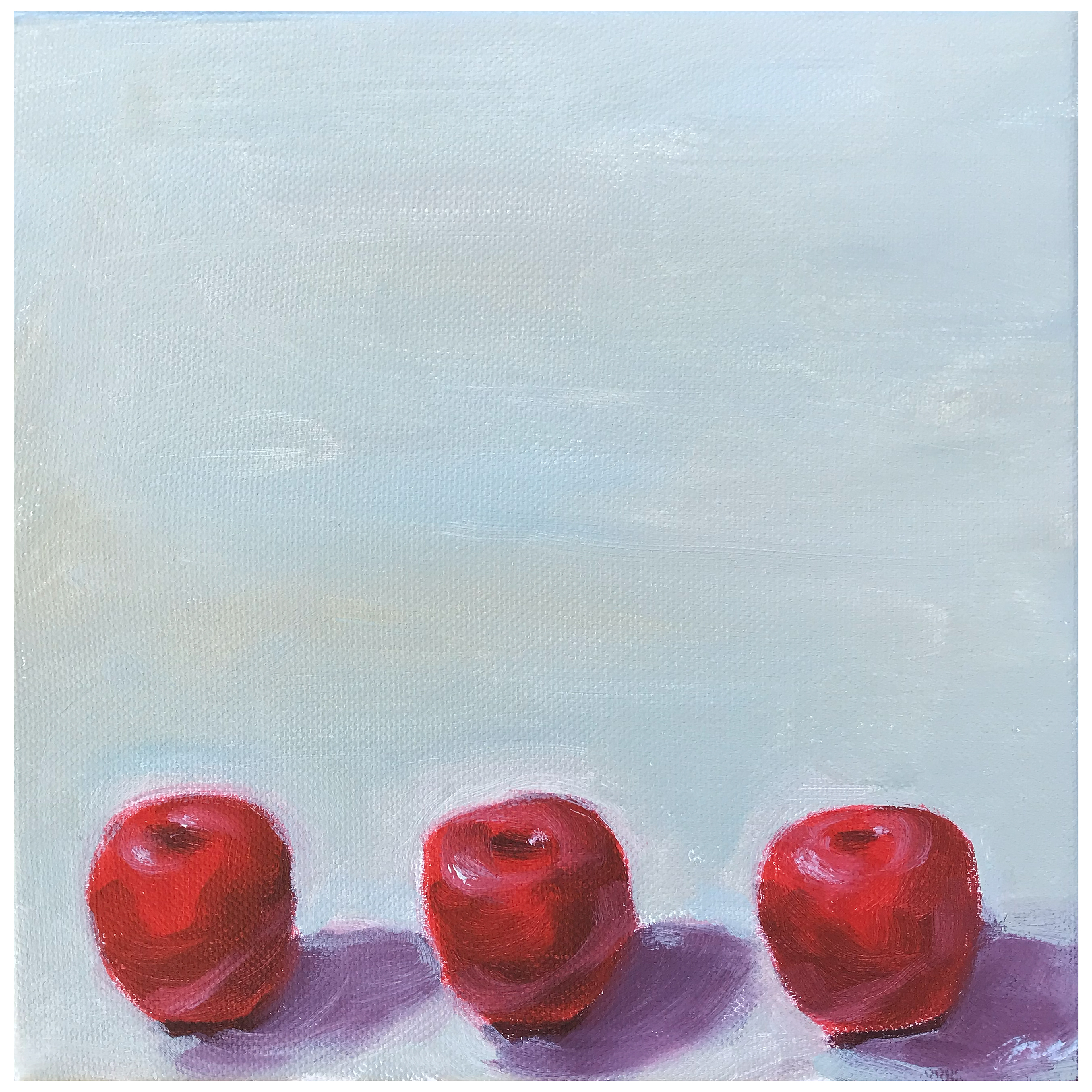 Apple Study, Three Small Apples, 2025, 30.5x30.5cm, Acrylic on canvas