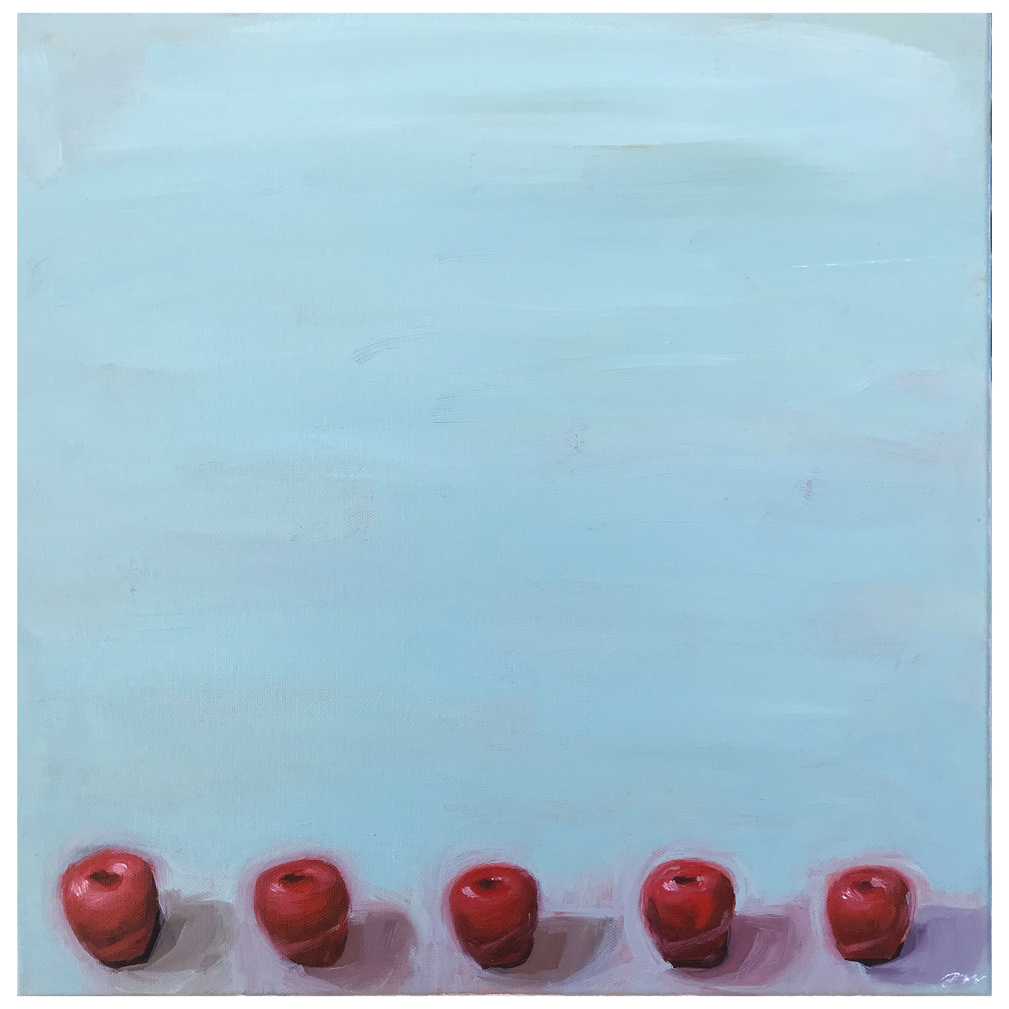 Apple Study, Five Apples in a Row, 2025, 40.5x40.5cm, Acrylic on canvas